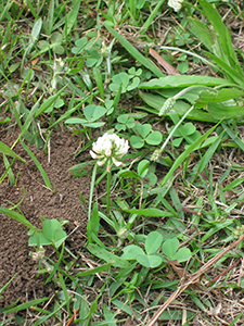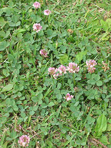 もう少しおおぶりの花で、アカツメクサというのがありますが、これはアカバナシロツメクサ。シロツメクサと同じサイズの花です。 |