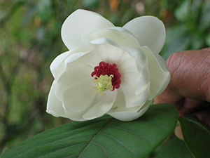 | 「天女花」とも呼ばれ、憧れている人の多いオオマヤレンゲの花が神代植物園に咲いていました。みんなでうっとりしてしまうほどきれいでしたが、山中ではなかなか見ることができないそうです。 |