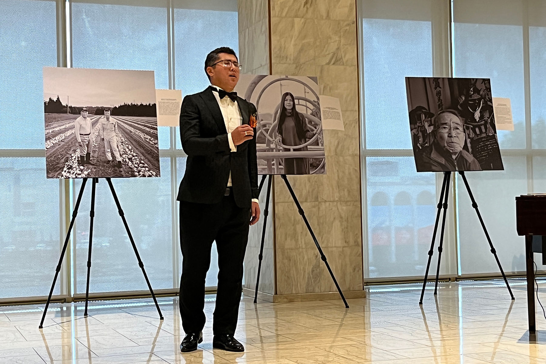 今回は「日本の秋2022」の中で東日本大震災をモチーフにした吉田繁先生の3つのプロジェクトから60点の写真作品を展示する個展と蟹江さんの福島のドキュメンタリー映画の上映が行われ、おふたりによる講演会も開催されました。会場となったキルギスタン国立歴史博物館には多くの方が見に来てくださり、日本のことやに震災から10年後の被災地の人々の暮らしにたいへん興味を持っていただきました。