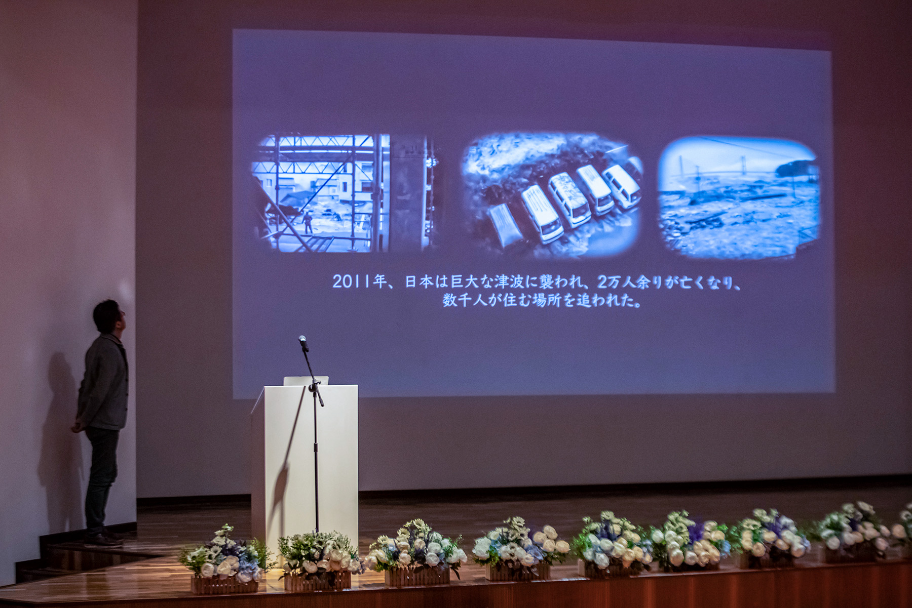 Yoshida also gave a speech as a representative of Japan. He talked about traditional Japanese culture. “We start a thing with bowing and end with bowing” is a good example of the Japanese way of thinking. He explained taking sumo as an example.