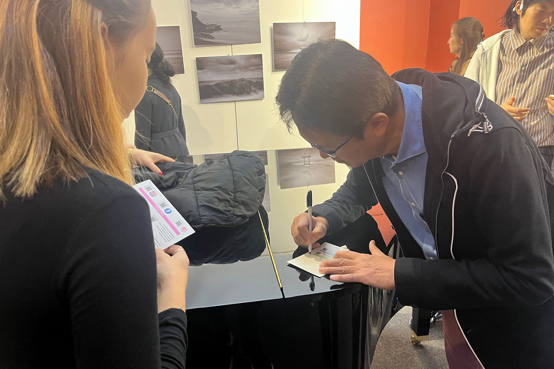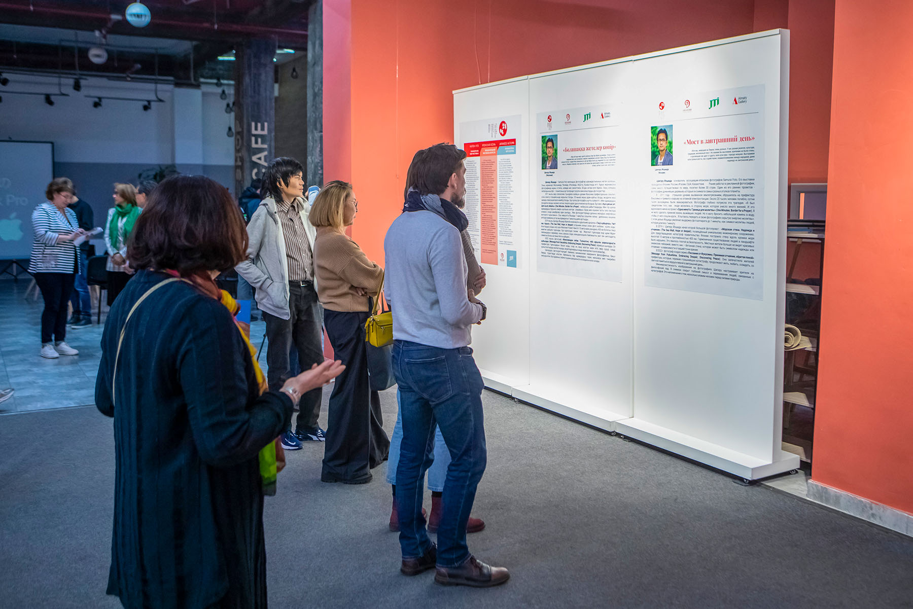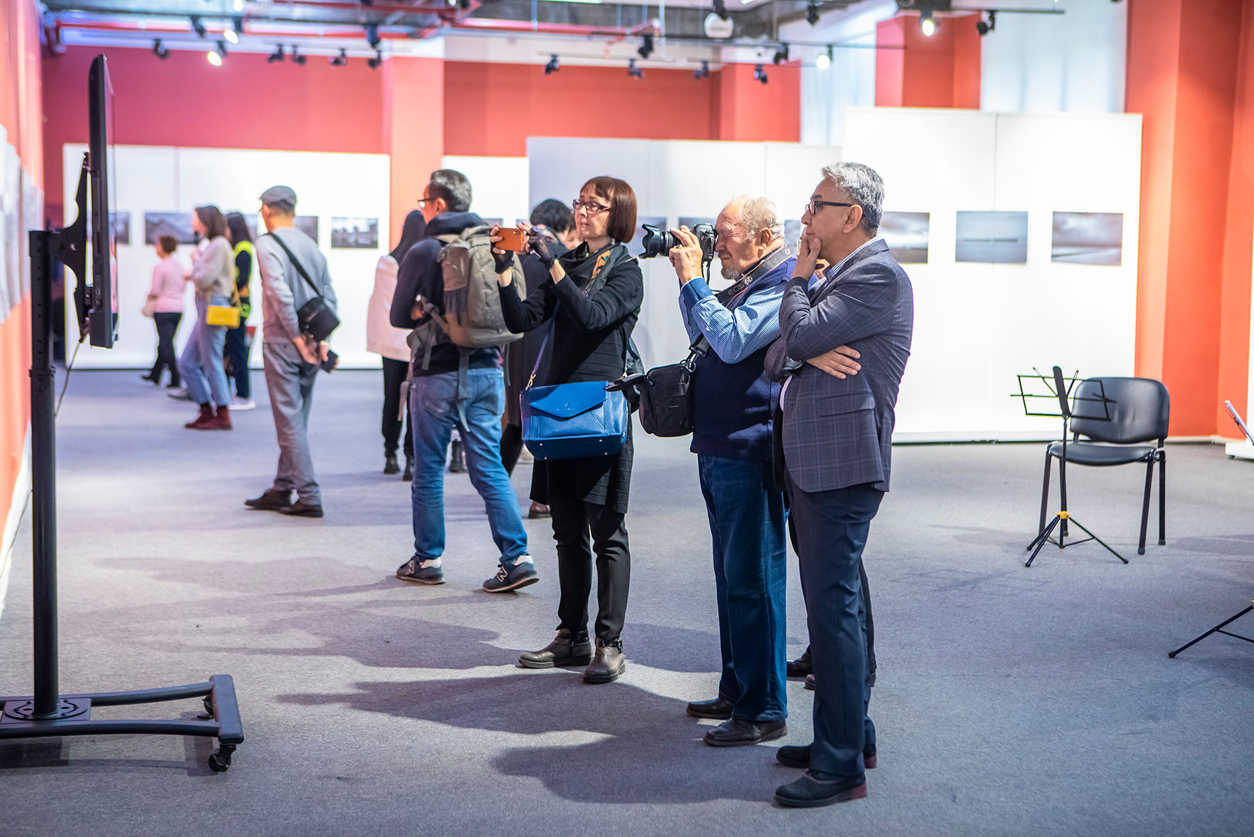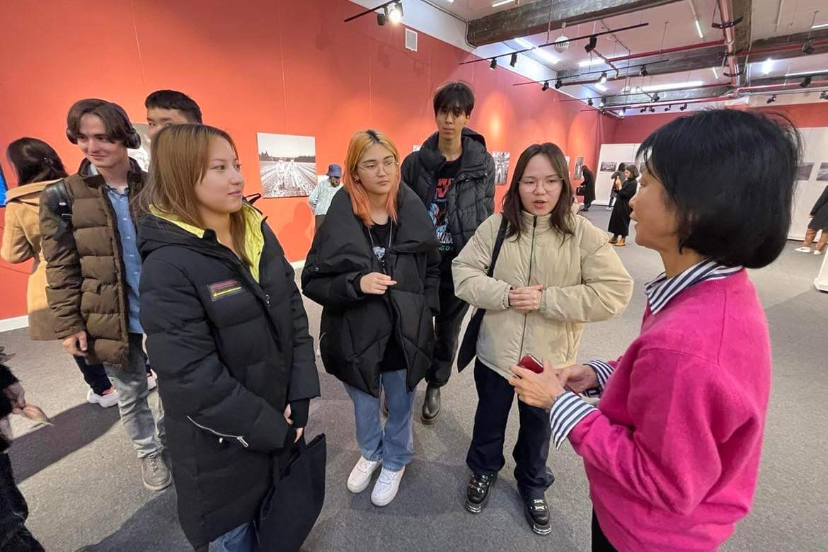 The opening ceremony would start at 4:00 pm, but the Almaty gallery was already crowded with people even before the ceremony. They saw the photos of the coastal embankment built after the earthquake, the scenery of the sea, and the portraits of the people in Fukushima intently.