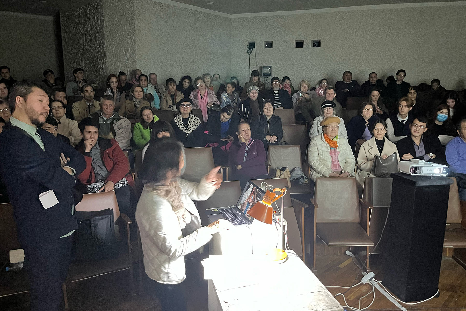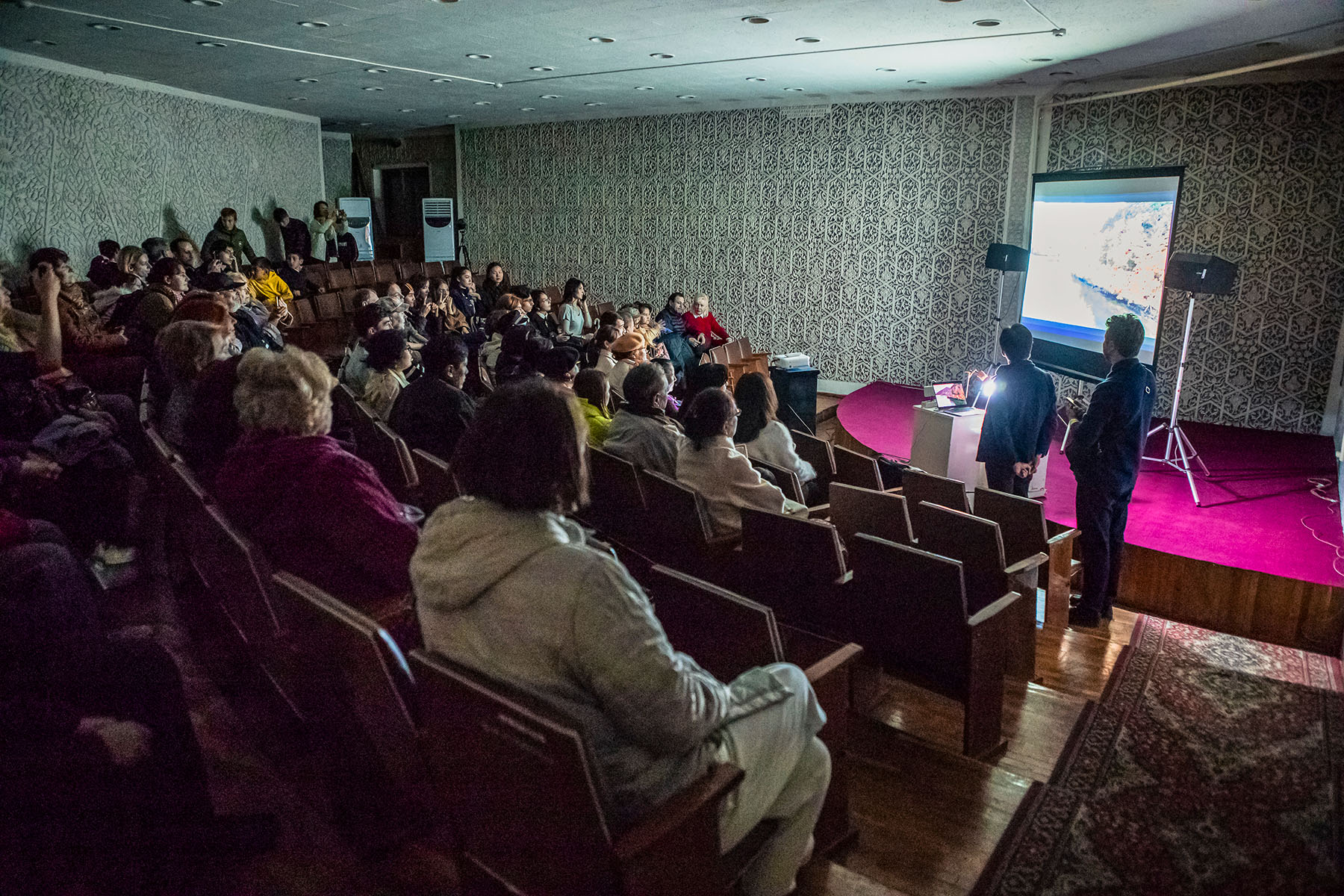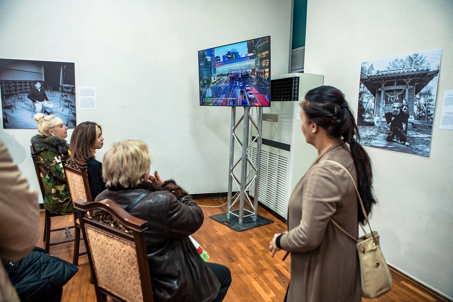 ウズベキスタン国立美術館は1918年に設立され、1935年まではロシア帝 国皇帝のニコライのロマノフ宮殿内に、1966年までは人民広場にあり、 1974年にこの地に新設されました。世界各国の美術品約50,000点を展示 しています。格式ある国立美術館で開催された「日本の秋2022」イベント に蟹江さんと吉田先生は招待作家として招かれました。 蟹江さんはドキュメンタリー映画『福島からのメッセージ』の上映と講演 会、吉田繁先生は60点の写真作品が展示される個展と講演会を行いました。