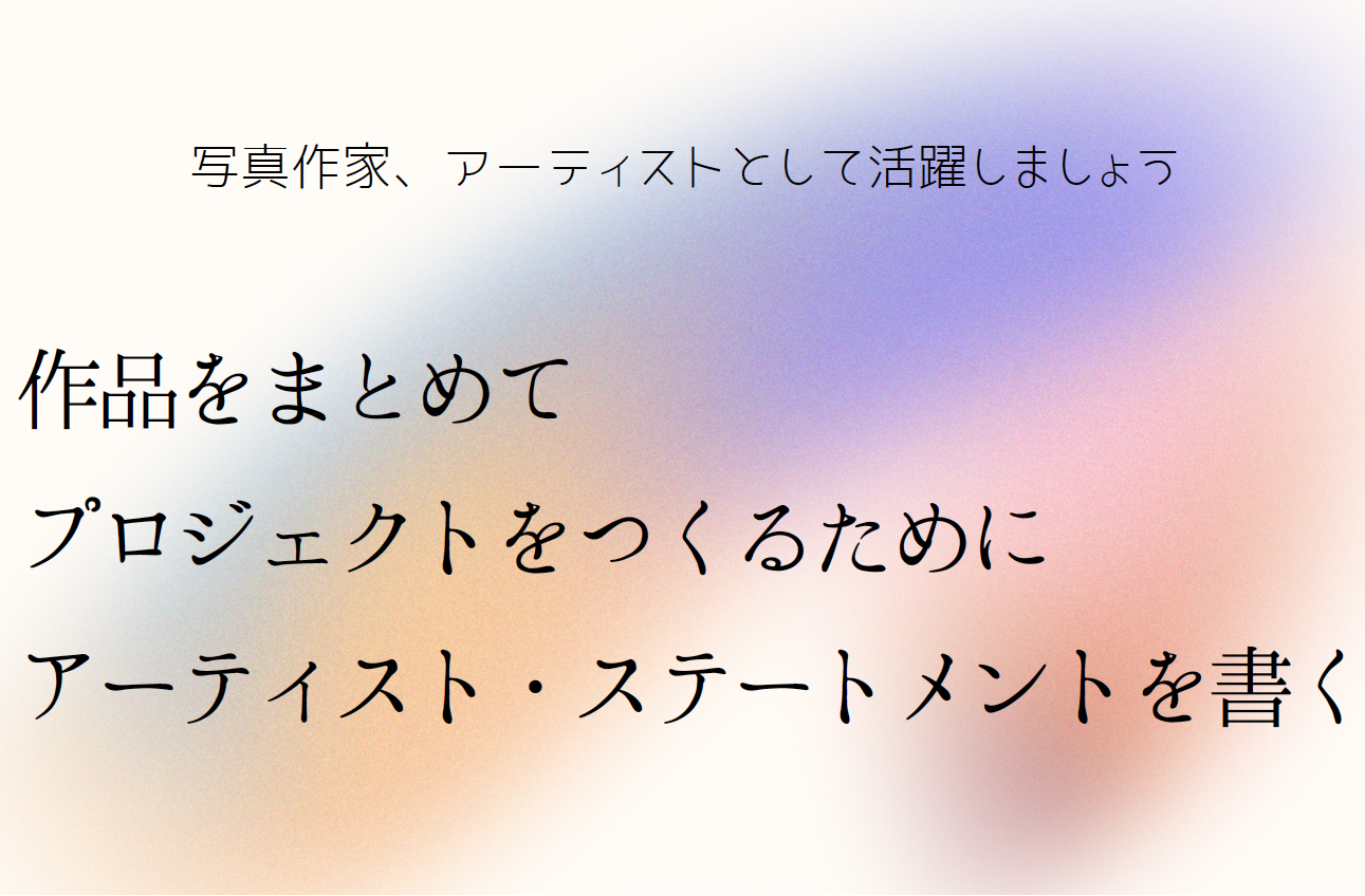 The lecture this time was for making one project (a series of artworks), but you can follow the same procedure when you write your philosophy for your artwork as a photographer. You’ll see your philosophy of your life through this process. Writing an artist statement can bring you such an effect.