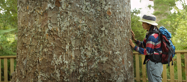 そこはニュージーランド北島の北部、タスマン海沿いに広がるワイポウア森林保護区。森のなかにつくられた遊歩道を歩き出すと、数10メートル離れた左手に、天空に向けて突き立つような白い樹肌の巨木が見えた。樹高ゆうに50メートルはあるだろう。ひときわそびえ立つその姿を目にした途端、周囲の空気は森厳なものに変わった。