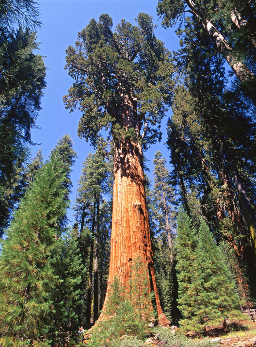 樹高83.8メートル、幹回り25.3メートル、根も含めた重さは2500トン。その高さは27階建てビルに匹敵し、建材にするとアメリカの平均的5LDKが40軒は建つ。これが世界一巨大であると公認された「シャーマン将軍」という名のジャイアント・セコイアの木である。樹齢は2800年だという。
