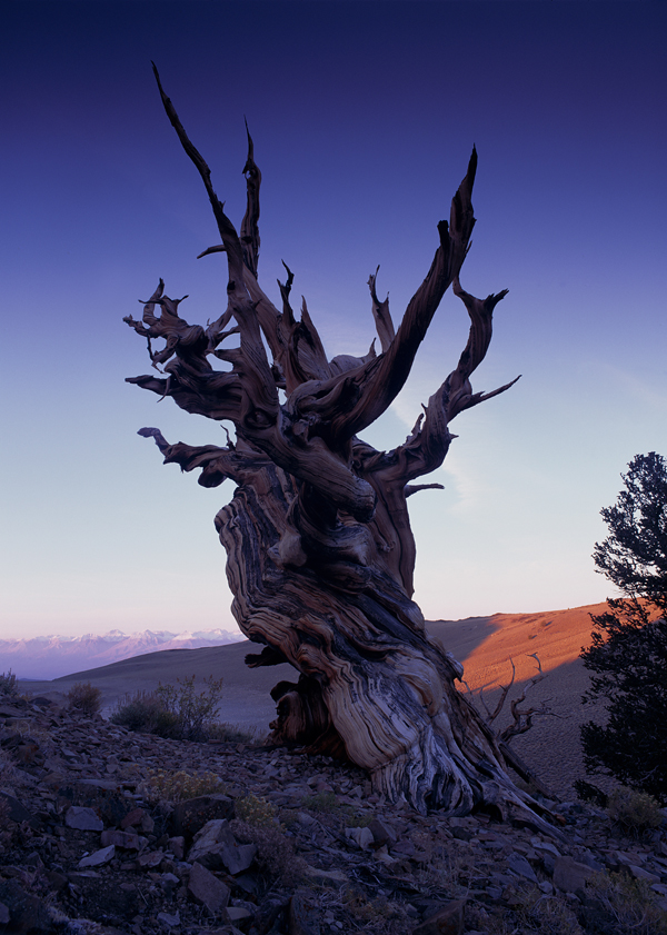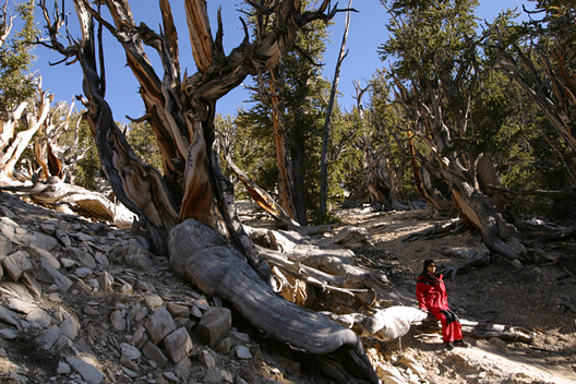 ホワイトマウンテンの標高は4342メートル。ブリスルコーン・パインの森はこの山の標高3000メートル付近から上にある。樹齢4727年の「メトセラ」と名づけられたブリスルコーン・パインもそこにある。この樹齢は推定ではなく、年輪を正確に数えたものだ。現存する木としては世界最古であり、この森にはほかにも4000年を超える木がいまなお17本も生きている。