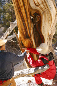 だが、生長速度が遅いほど、木は緻密に育つ。年輪が密なのは、屋久スギと同様で、たっぷりと樹脂を含んでいる。それは腐敗や病気に強く、水分の消失を防ぐことにつながる。あたかも、それは粗食な人間ほど、かくしゃくとして長命なのに似ている。過酷な環境に屈することなく、黙々とそれに準じ、我が身の大部分を枯らして一部だけで生きる。それがブリッスルコーン・パインの長寿の秘密だったのである。